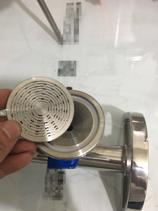 2、擰松夾子,拿走濾杯,在不銹鋼支撐板下先放好一片密封圈,然后在不銹鋼支撐板放微孔濾膜(直徑50mm-60mm)膜上也放好一片密封圈,再安裝濾杯,將不銹鋼夾子固定。